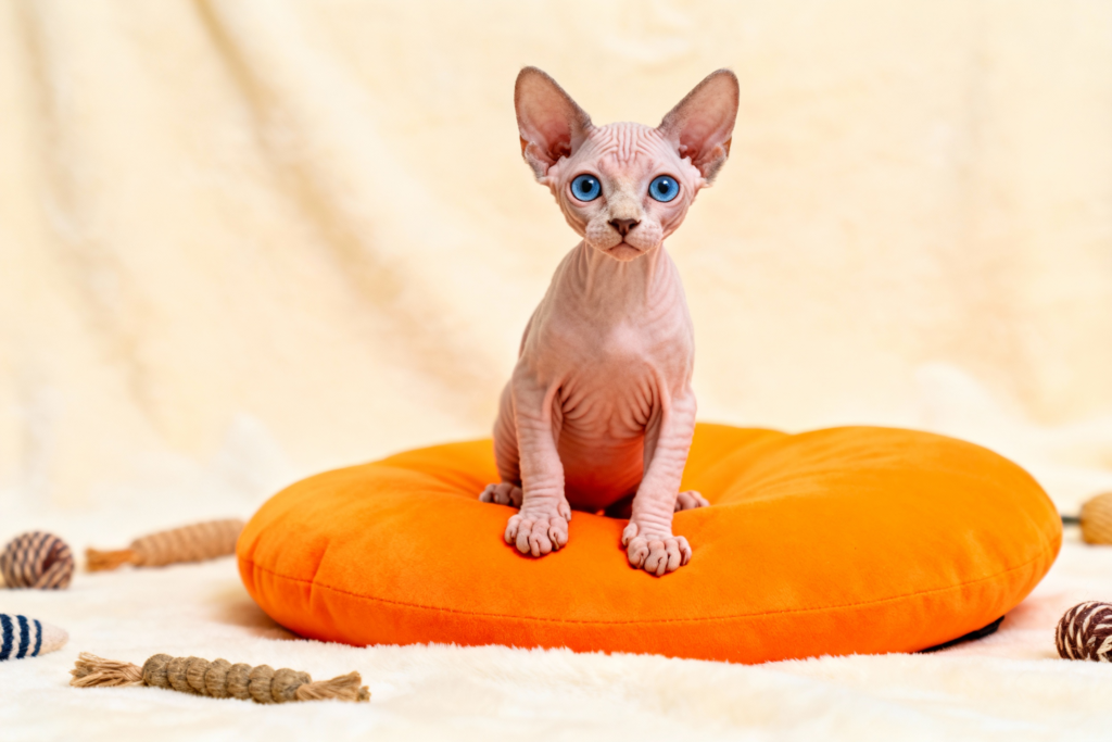 Playful, energetic, and deeply affectionate. Their hairlessness makes them hypoallergenic. They maintain a kittenish personality.