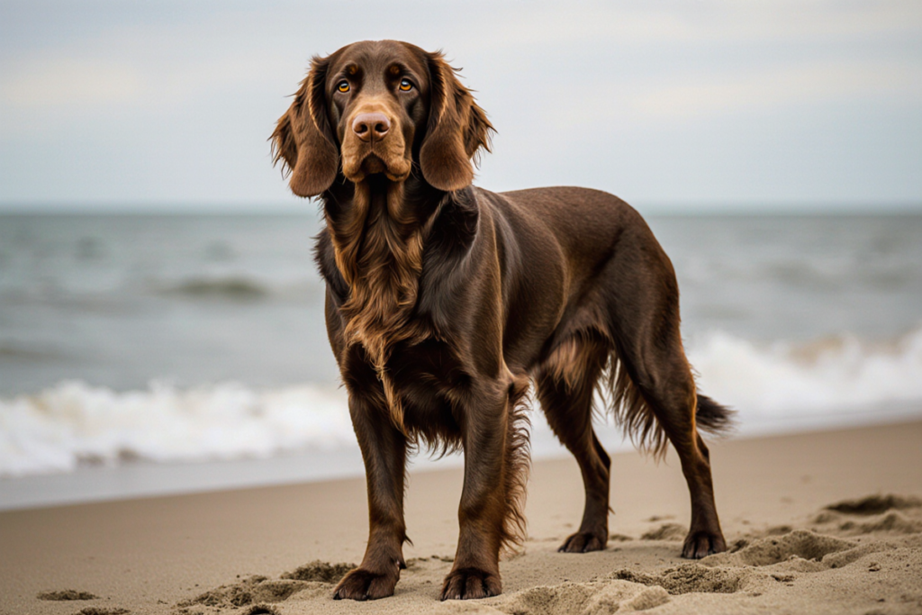 Coat & Color: Medium-length, wavy coat; solid liver brown